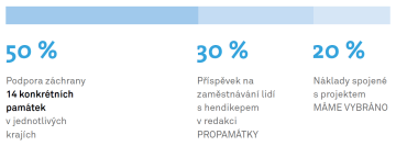 Polovinu financí generálního partnera vrátíme zpět do regionů na opravy památek. O konkrétní výši rozhoduje veřejnost ve stejnojmenné soutěži on-line hlasováním. Čím více hlasů památka získá, tím více prostředků od nás obdrží na své sbírkové konto. Každoročně představujeme více než 300 veřejných sbírek, ze kterých vzejde 14 krajských vítězů.
